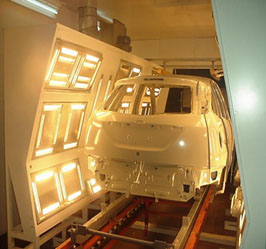 Horno de pregelado de selladores por lámparas infrarrojas en Planta Industrial Automotriz.